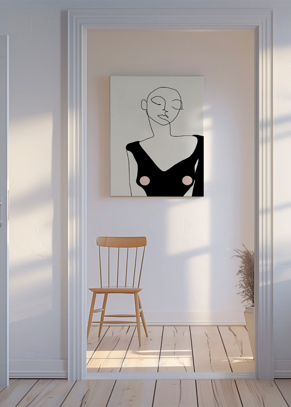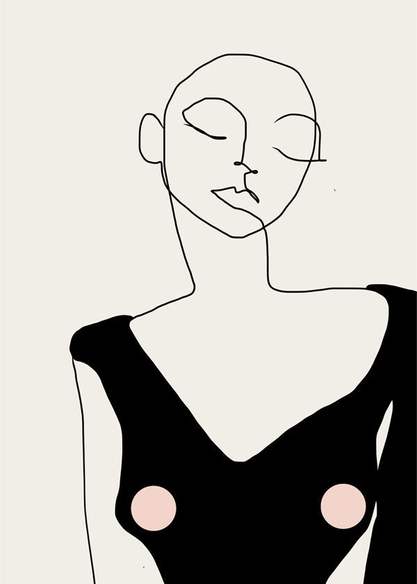 Schönes Wandbild aus unserer Kollektion von wandbild mit frau, kreiert von Sophia Novosel, mit Farbtönen Schwarz, und Bildorientierung Vertikal. Wandbilder mit Zeichnungen und Skizzen verleihen jeder Inneneinrichtung einen originellen Touch. Die beste Lösung für leere, langweilige Wände.