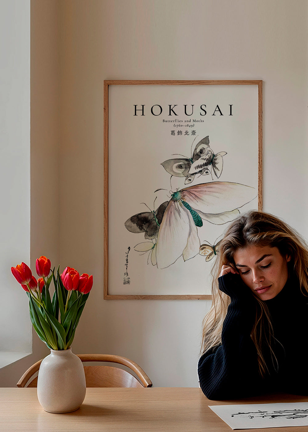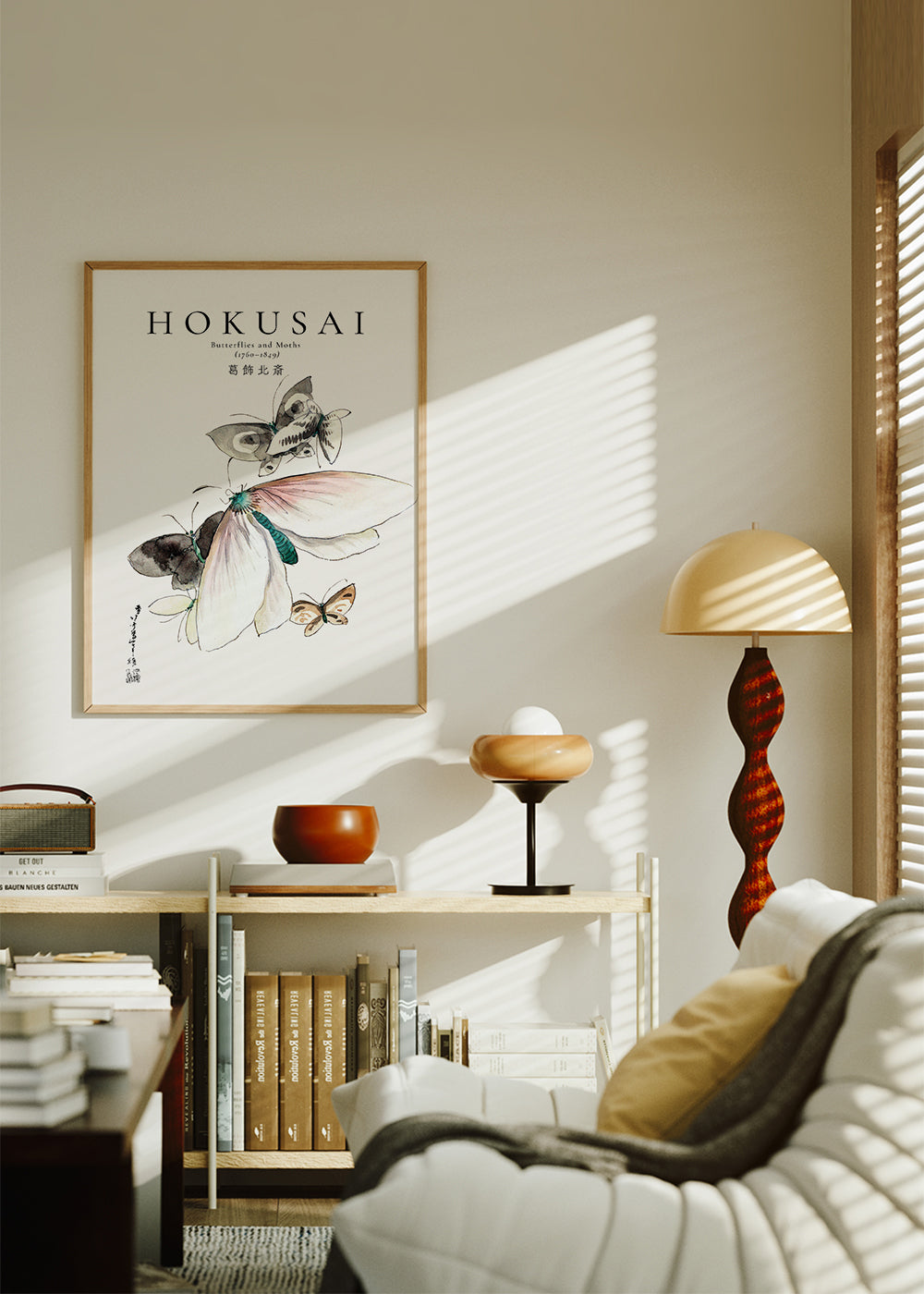 Poster in Schwarz-Weiß Butterflies and Moths by Katsushika Hokusai