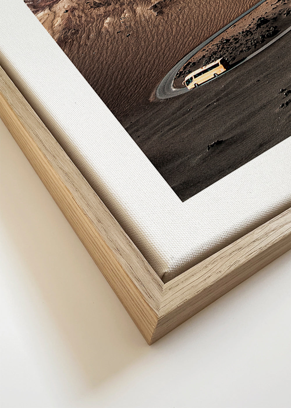 Wenn Sie die Passepartout-Option wählen, fügen wir die weiße matte Platte dem Rahmen hinzu und reduzieren das Design der Arbeit. Wählen Sie beispielsweise ein Druckformat 50x70 cm, mit eichenfarbenem Rahmen und Passepartout, reduzieren wir das Design des Druckes auf das bisherige Format (40x50cm). So passt es sich perfekt an das Innenfenster des Passepartouts an.