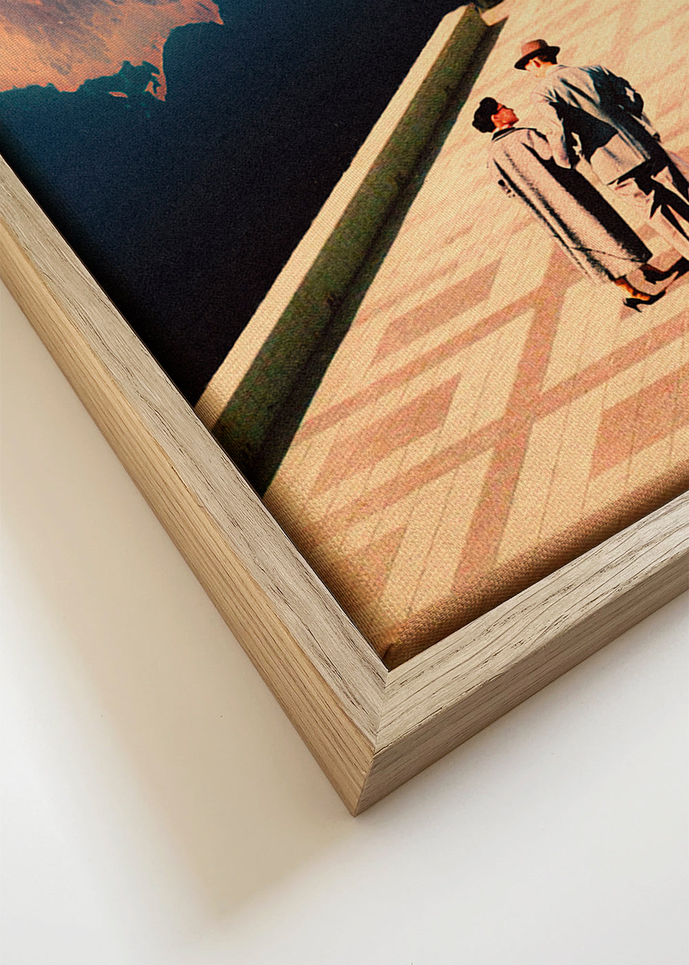 Wenn Sie die Passepartout-Option wählen, fügen wir die weiße matte Platte dem Rahmen hinzu und reduzieren das Design der Arbeit. Wählen Sie beispielsweise ein Druckformat 50x70 cm, mit eichenfarbenem Rahmen und Passepartout, reduzieren wir das Design des Druckes auf das bisherige Format (40x50cm). So passt es sich perfekt an das Innenfenster des Passepartouts an.