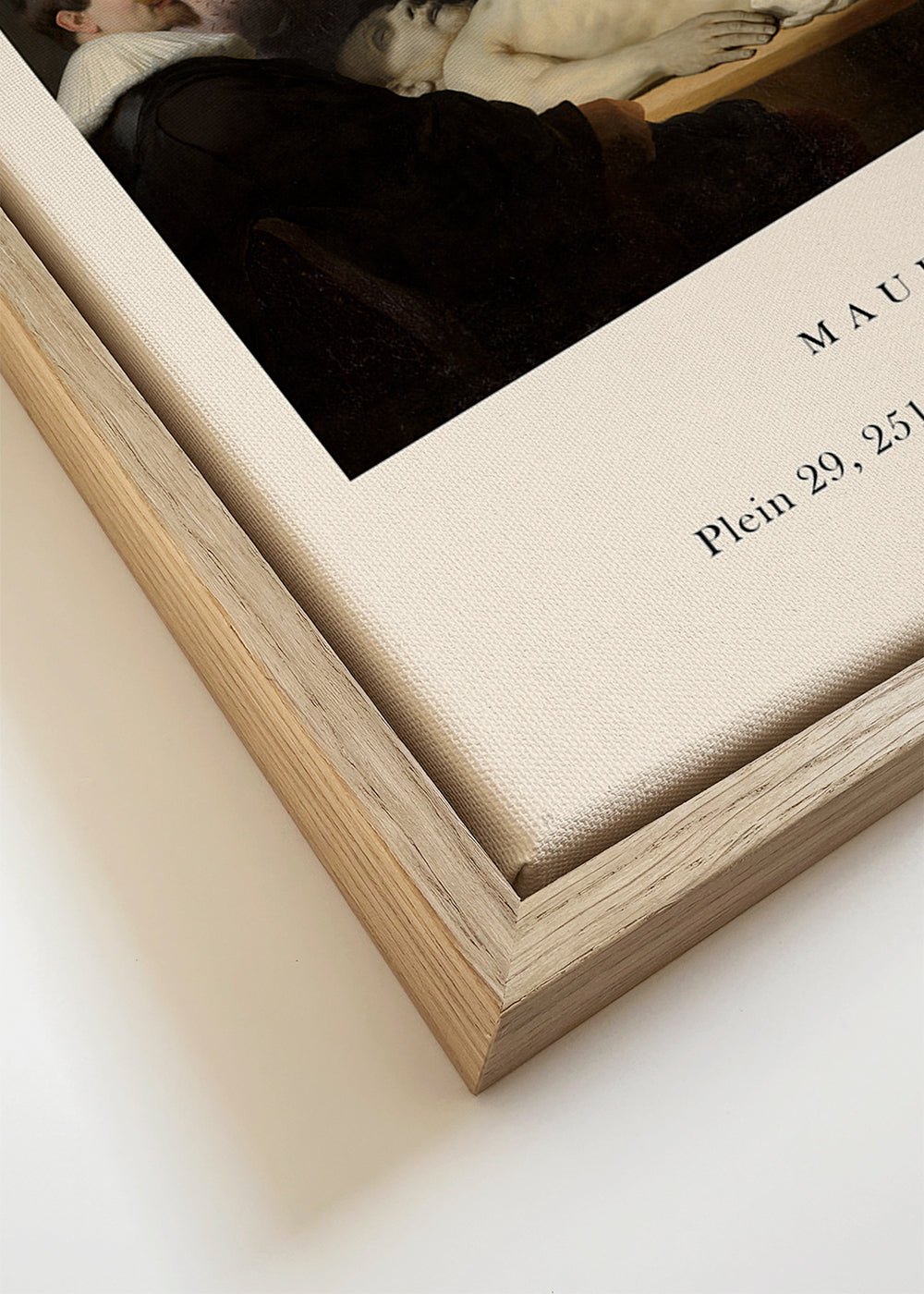 Wenn Sie die Passepartout-Option wählen, fügen wir die weiße matte Platte dem Rahmen hinzu und reduzieren das Design der Arbeit. Wählen Sie beispielsweise ein Druckformat 50x70 cm, mit eichenfarbenem Rahmen und Passepartout, reduzieren wir das Design des Druckes auf das bisherige Format (40x50cm). So passt es sich perfekt an das Innenfenster des Passepartouts an.