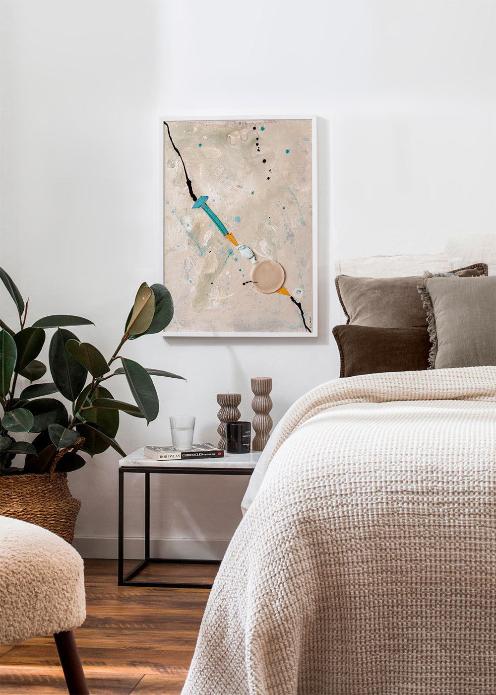 Farbe, Chaos, Harmonie. Elegantes design Ein Meisterwerk von Elena Camacho Art. Elegante beigetöne palette gefertigt in vertikal ausrichtung. Das abstrakte wandbild wird deiner inneneinrichtung einen modernen touch verleihen. Verwandle deine langweiligen wände