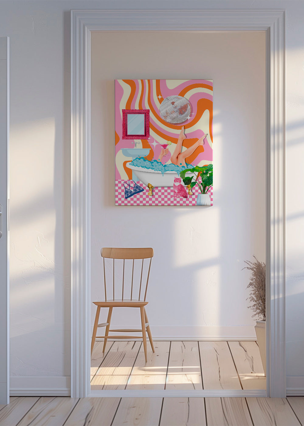 Das Passepartout ist eine weiße, matte Pappe, die das Poster umgibt, um es vor Methacrylat zu schützen, und die auch die Ausdruckskraft der Arbeit verstärkt und Details hervorhebt.