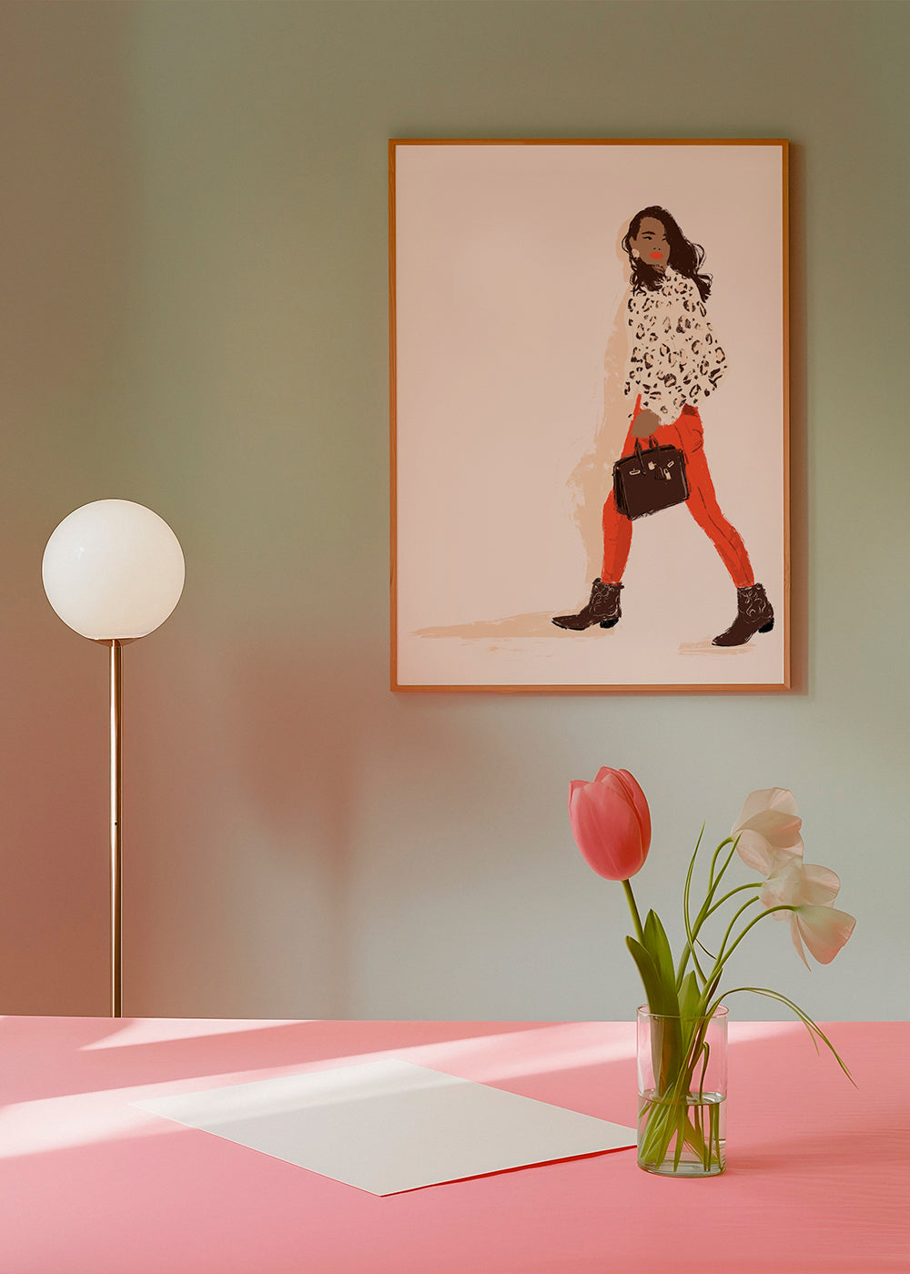 Bezaubernde Zeichnungen. Schöner druck Vision des Künstlers Ludivine Josephine. Mit rote farbtönen präsentiert in einem vertikal stil. Das wandbild ist ideal für wohnbereiche mit künstlerischem und kreativem flair unsere poster mit zeichnungen und illustrationen sind ideal um leere, langweilige wände zu dekorieren. Verwandle deine langweiligen wände