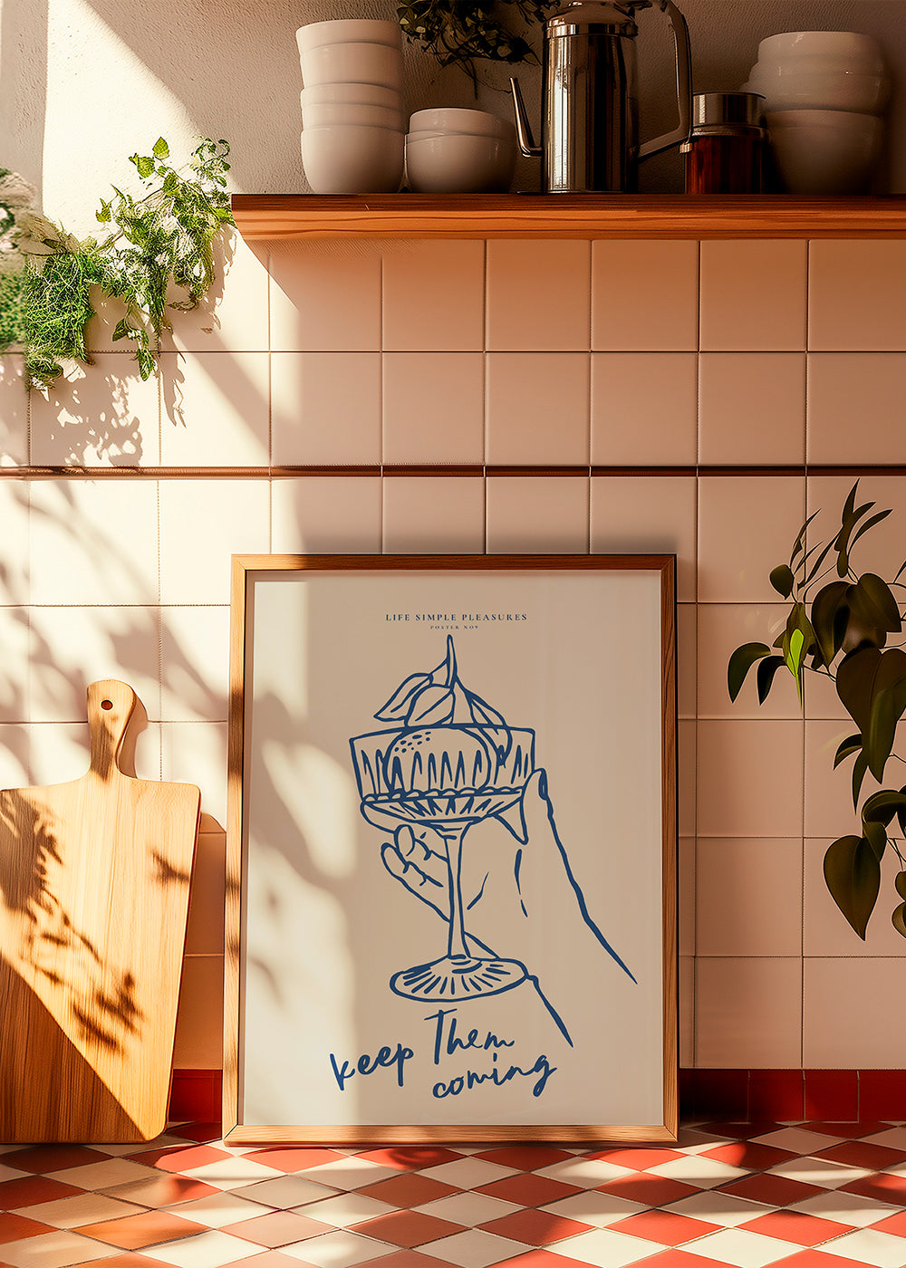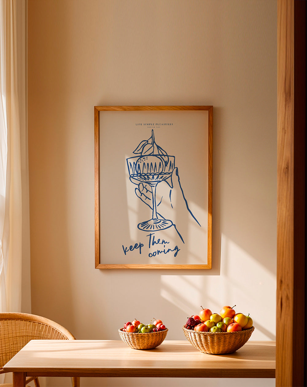 Ein Wandbild aus unserer Kunstauswahl essen- und trinken-poster, Künstlern Seven Wall Art, mit Nuancen blau, und mit Bildposition vertikal. Auch die Küche kann ein fröhlicher Ort sein – lasse dich von unseren Küchenpostern und +Wandbildern mit Küchenmotiven+ inspirieren. Lasse deiner Kreativität freien Lauf und dekoriere deine Wände mit Kunst.