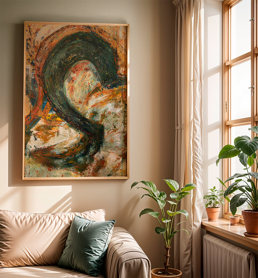 Ein Poster Im Stil unserer poster abstrakt, geschaffen von Elena Camacho Art, in den Farbtönen mehrfarbig, und im Format vertikal. Abstrakte Kunst inspiriert und regt uns an, über die Bedeutung der Werke nachzudenken. Gestalte einen einzigartigen Bereich.