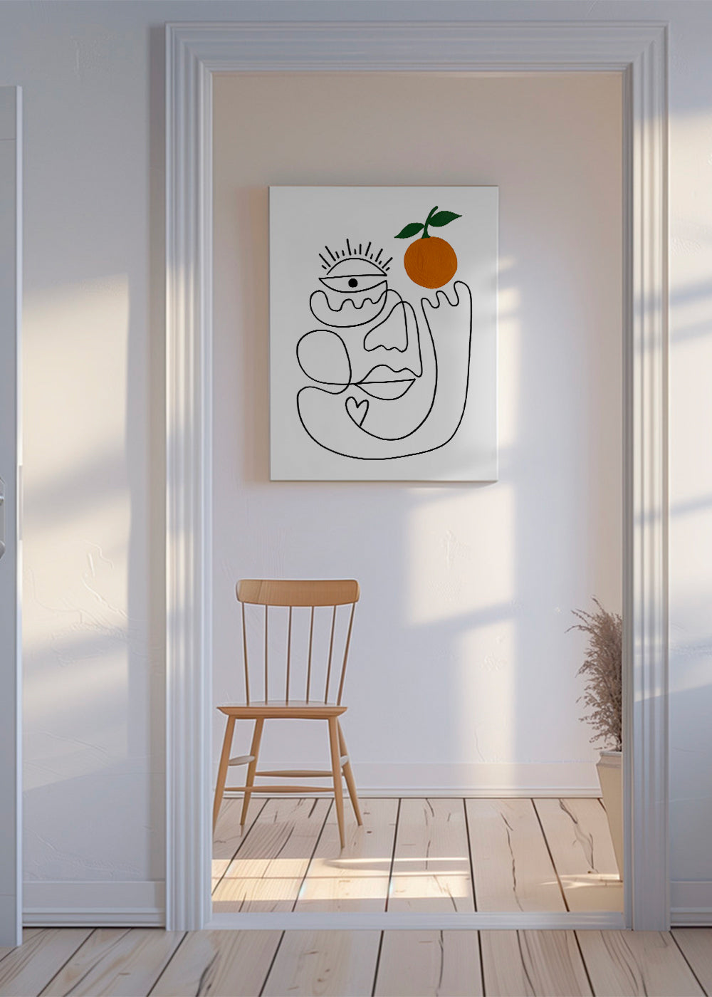 Ein Wandbild inspiriert durch die Kollektion von bilder mit gesichtern, gehört zur Kollektion Shatha Dafai, mit Farbnuance orange, und im Format vertikal. Abstrakte Wandbilder und Poster machen Räume einzigartig. Lasse deiner Kreativität freien Lauf und dekoriere deine Wände mit Kunst.