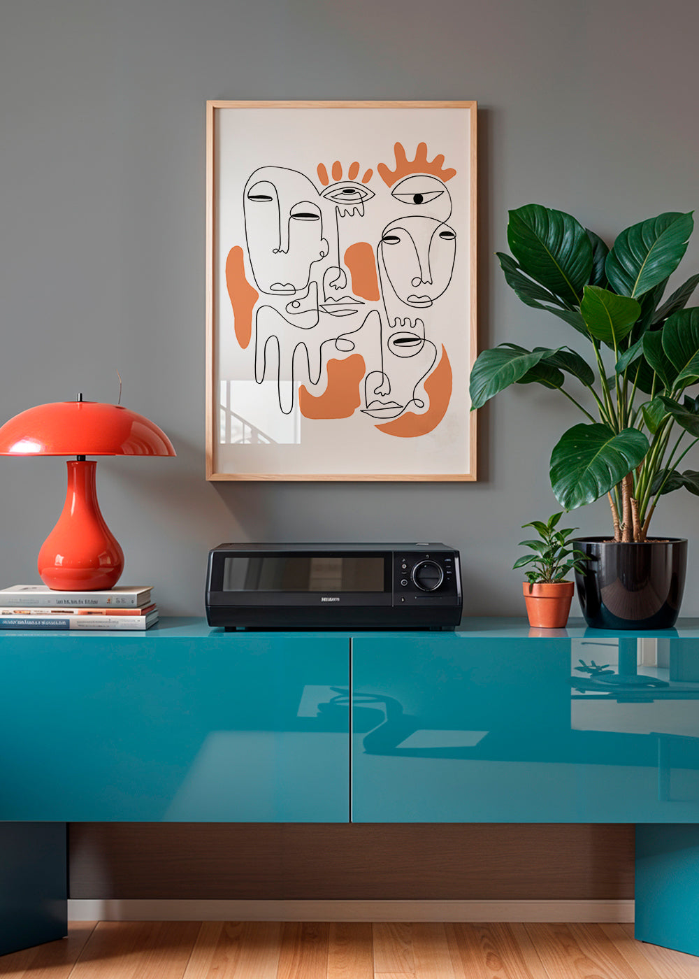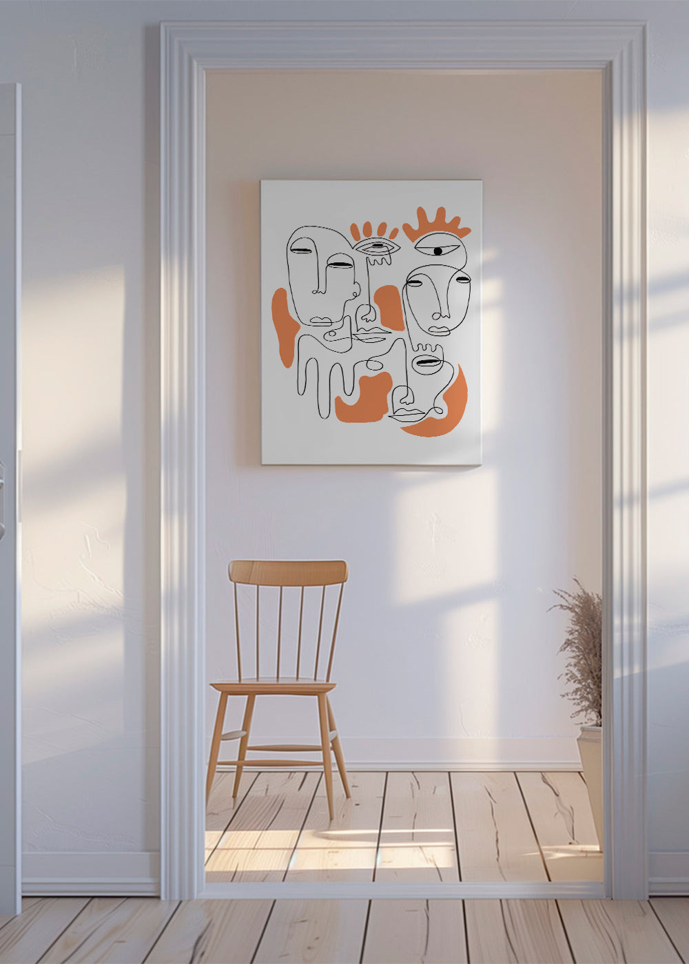 Dieses Wandbild aus unserer handverlesene Auswahl nach bilder mit gesichtern, kreiert von Shatha Dafai, mit Farben orange, und im Format vertikal. Abstrakte Kunst inspiriert und regt uns an, über die Bedeutung der Werke nachzudenken. Das ist das Bild, worauf deine Wand gewartet hat.