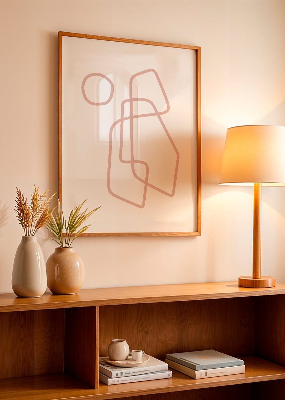 Ein Kunstdruck aus unserer Kunstauswahl line-art-bilder, aus der Kollektion des Künstlers Nouveau Prints, Farbtönen Rosa, und ideal für die Bildposition Vertikal. Der Kunstdruck mit abstrakten Formen lässt sich hervorragend mit geometrischen Formen und abstrakter Kunst kombinieren. Verschönere deine Inneneinrichtung mit Kunst.