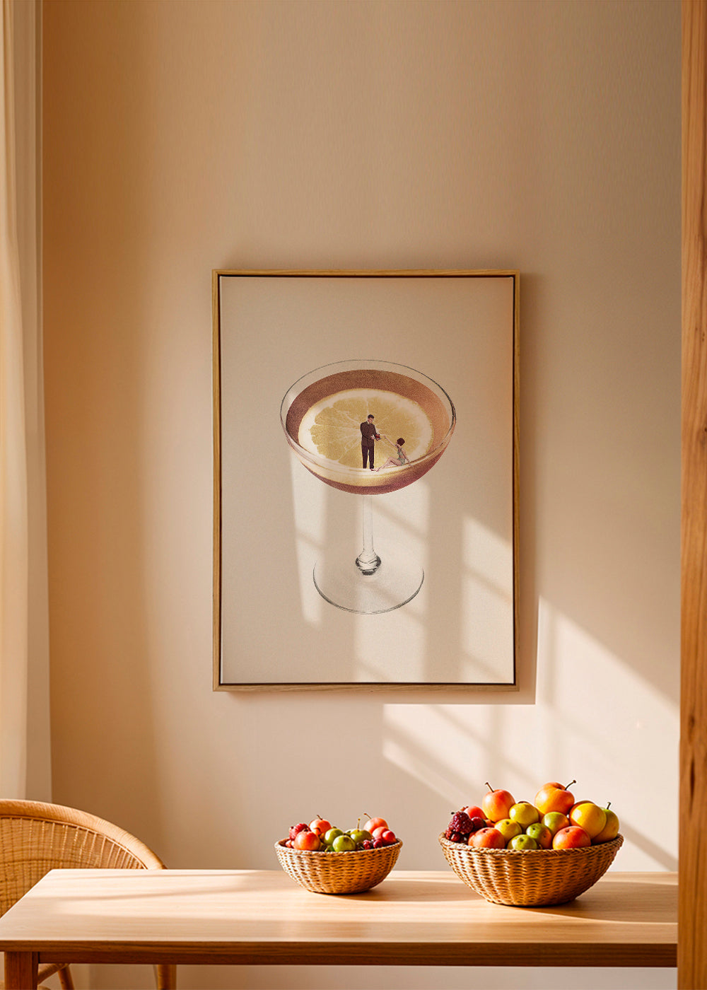 Wenn Sie die Passepartout-Option wählen, fügen wir die weiße matte Platte dem Rahmen hinzu und reduzieren das Design der Arbeit. Wählen Sie beispielsweise ein Druckformat 50x70 cm, mit eichenfarbenem Rahmen und Passepartout, reduzieren wir das Design des Druckes auf das bisherige Format (40x50cm). So passt es sich perfekt an das Innenfenster des Passepartouts an.