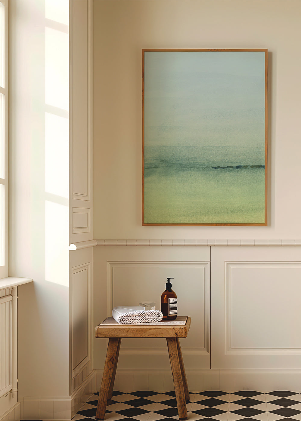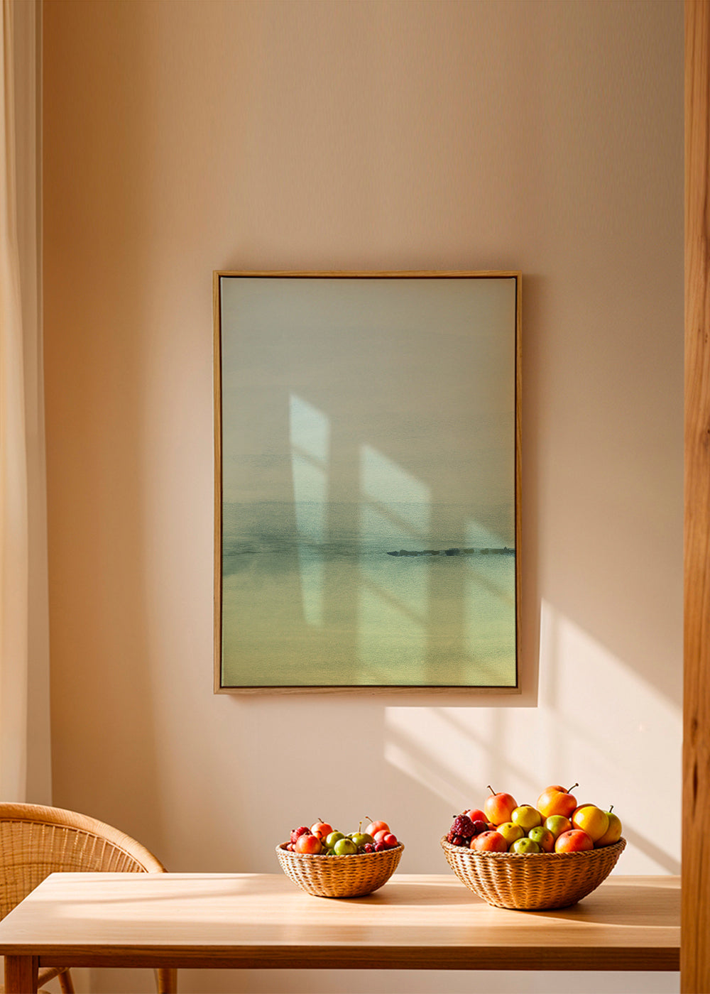 Wenn Sie die Passepartout-Option wählen, fügen wir die weiße matte Platte dem Rahmen hinzu und reduzieren das Design der Arbeit. Wählen Sie beispielsweise ein Druckformat 50x70 cm, mit eichenfarbenem Rahmen und Passepartout, reduzieren wir das Design des Druckes auf das bisherige Format (40x50cm). So passt es sich perfekt an das Innenfenster des Passepartouts an.