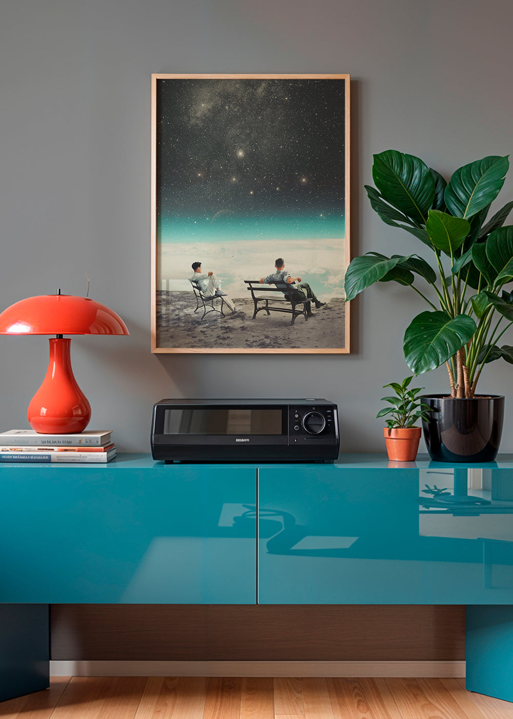 Ein Kunstdruck Im Stil unserer retro-poster und vintage-wandbilder, kreiert von Frank Moth, mit einem Hauch von Blau, und mit Ausrichtung Vertikal. Retro-Bilder und +Retro-Poster+ sind eine tolle Einrichtungsidee für +Wohnungen im Vintage-Stil+. Verleihe deinen Zimmern mit Kunst einen neuen Look.