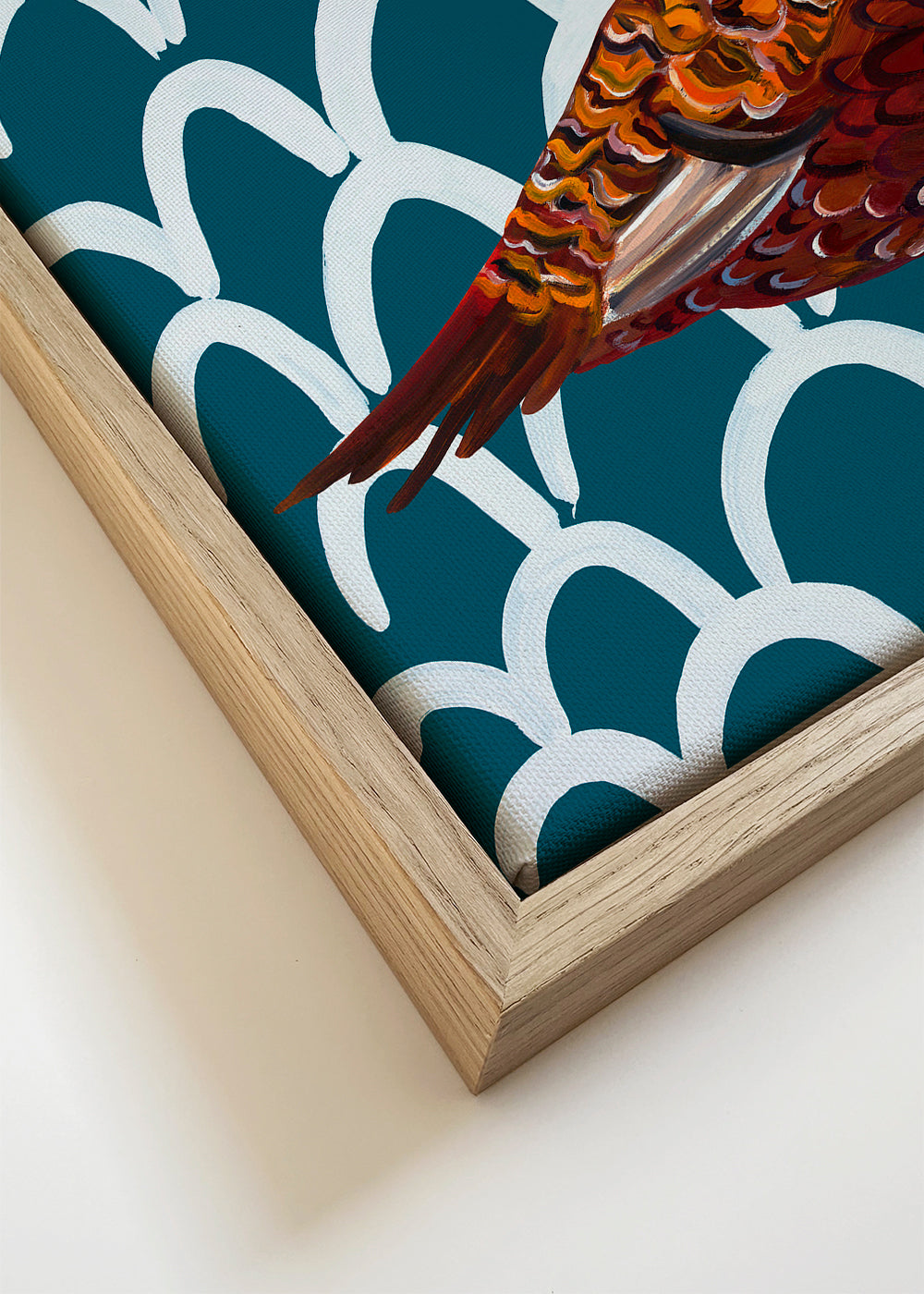 Wenn Sie die Passepartout-Option wählen, fügen wir die weiße matte Platte dem Rahmen hinzu und reduzieren das Design der Arbeit. Wählen Sie beispielsweise ein Druckformat 50x70 cm, mit eichenfarbenem Rahmen und Passepartout, reduzieren wir das Design des Druckes auf das bisherige Format (40x50cm). So passt es sich perfekt an das Innenfenster des Passepartouts an.