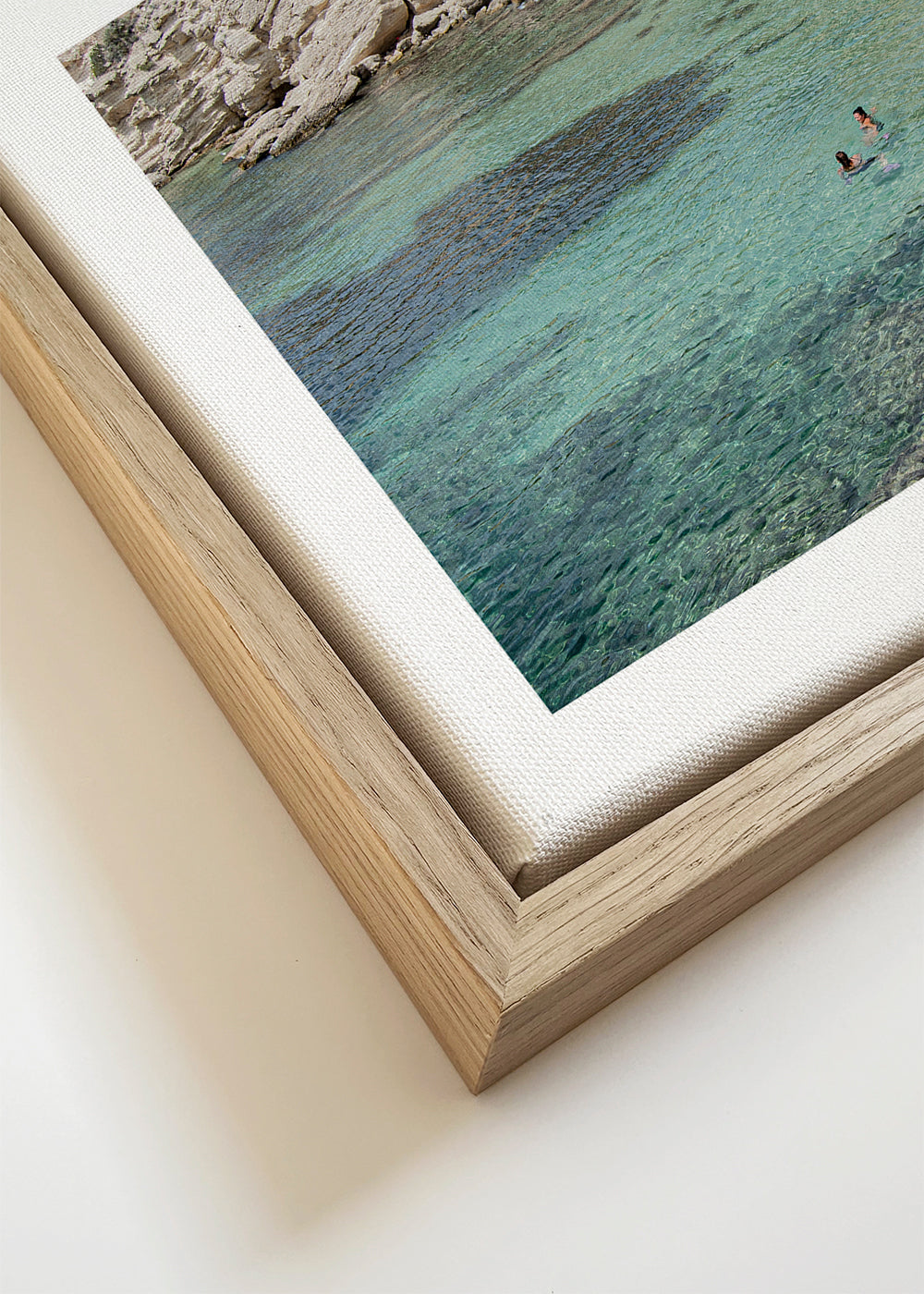 Wenn Sie die Passepartout-Option wählen, fügen wir die weiße matte Platte dem Rahmen hinzu und reduzieren das Design der Arbeit. Wählen Sie beispielsweise ein Druckformat 50x70 cm, mit eichenfarbenem Rahmen und Passepartout, reduzieren wir das Design des Druckes auf das bisherige Format (40x50cm). So passt es sich perfekt an das Innenfenster des Passepartouts an.