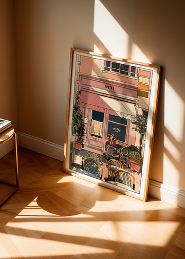 Wenn Sie die Passepartout-Option wählen, fügen wir die weiße matte Platte dem Rahmen hinzu und reduzieren das Design der Arbeit. Wählen Sie beispielsweise ein Druckformat 50x70 cm, mit eichenfarbenem Rahmen und Passepartout, reduzieren wir das Design des Druckes auf das bisherige Format (40x50cm). So passt es sich perfekt an das Innenfenster des Passepartouts an.