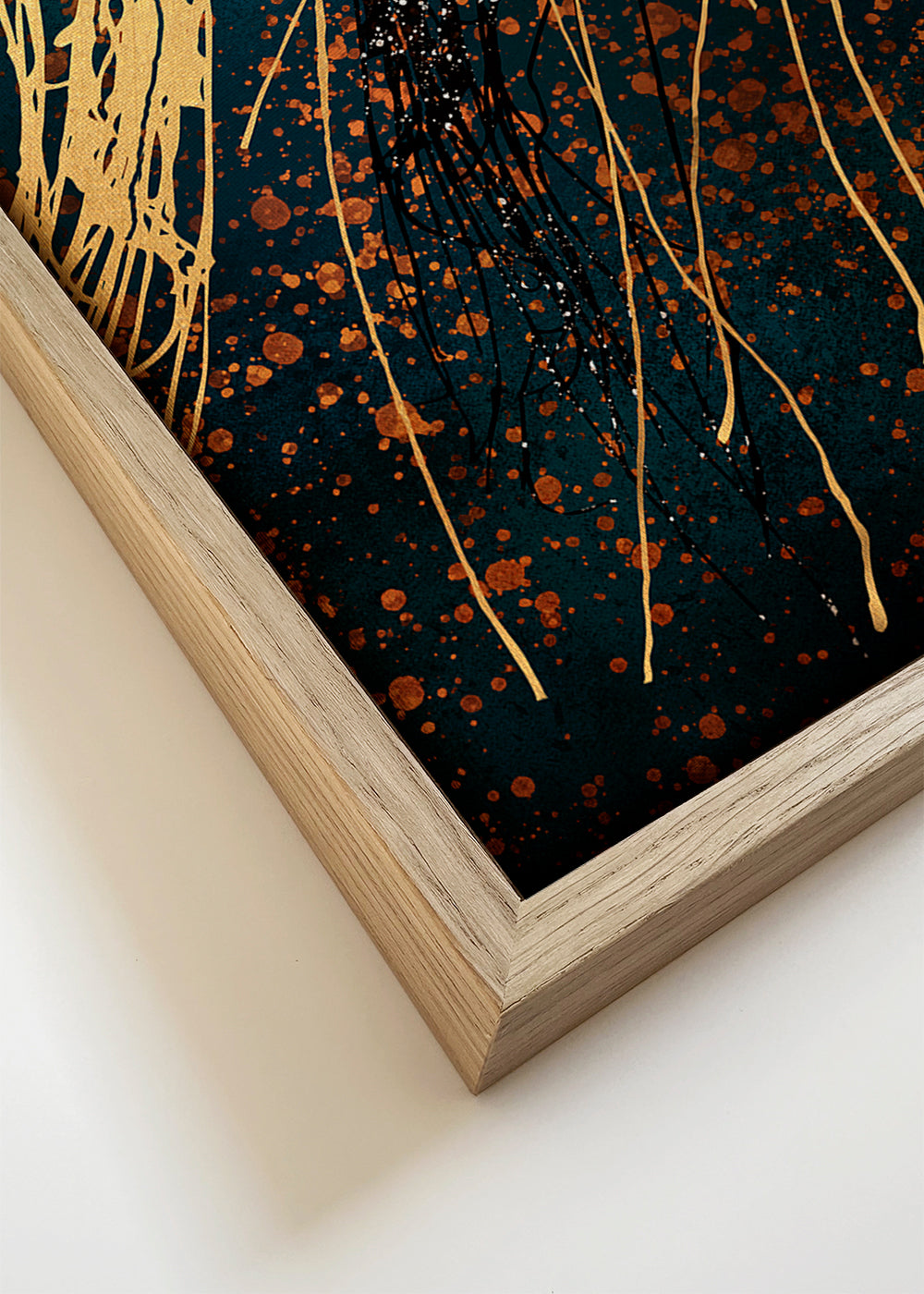 Wenn Sie die Passepartout-Option wählen, fügen wir die weiße matte Platte dem Rahmen hinzu und reduzieren das Design der Arbeit. Wählen Sie beispielsweise ein Druckformat 50x70 cm, mit eichenfarbenem Rahmen und Passepartout, reduzieren wir das Design des Druckes auf das bisherige Format (40x50cm). So passt es sich perfekt an das Innenfenster des Passepartouts an.