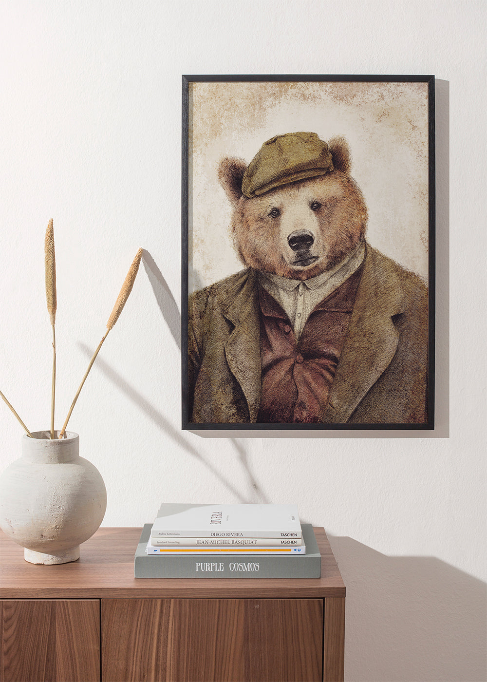 Wenn Sie die Passepartout-Option wählen, fügen wir die weiße matte Platte dem Rahmen hinzu und reduzieren das Design der Arbeit. Wählen Sie beispielsweise ein Druckformat 50x70 cm, mit eichenfarbenem Rahmen und Passepartout, reduzieren wir das Design des Druckes auf das bisherige Format (40x50cm). So passt es sich perfekt an das Innenfenster des Passepartouts an.